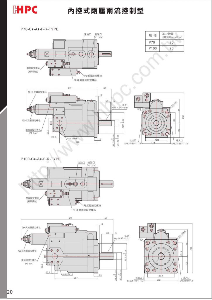 P16-C1-A3-F-R-01內控式兩壓兩流控制型 C-A_Type產品特色說明 泵浦在低壓時為大流量,高壓力時為小流量的兩壓兩流控制功能。 當系統壓力負荷增高,超過PL的壓力設定值以上時,泵浦自動轉變為QL值的小流...