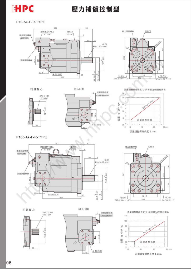 P16-A3-F-R-01壓力補償控制型 A_Type產品特色說明 當油泵的輸出壓力接近設定壓力時,則油泵的流量自動減少到最小流量,保持設定的壓力。 設定的壓力用手動調整。